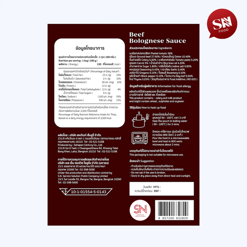ซอสโบโลเนสเนื้อ Bolognese Sauce อาหารสำเร็จรูปพร้อมทาน