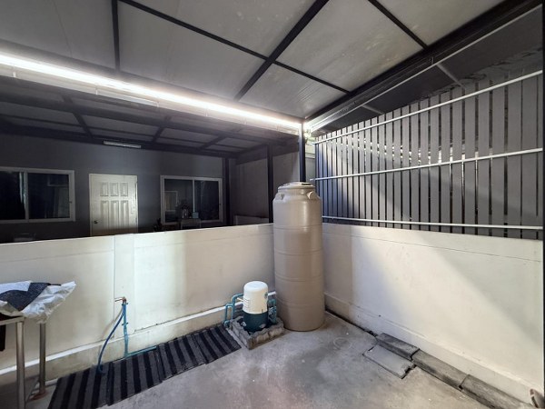 พื้นชั้นบนและชั้นล่างปูแกรนิโต้ ต่อเติมหลังคาครัวเรียบร้อย